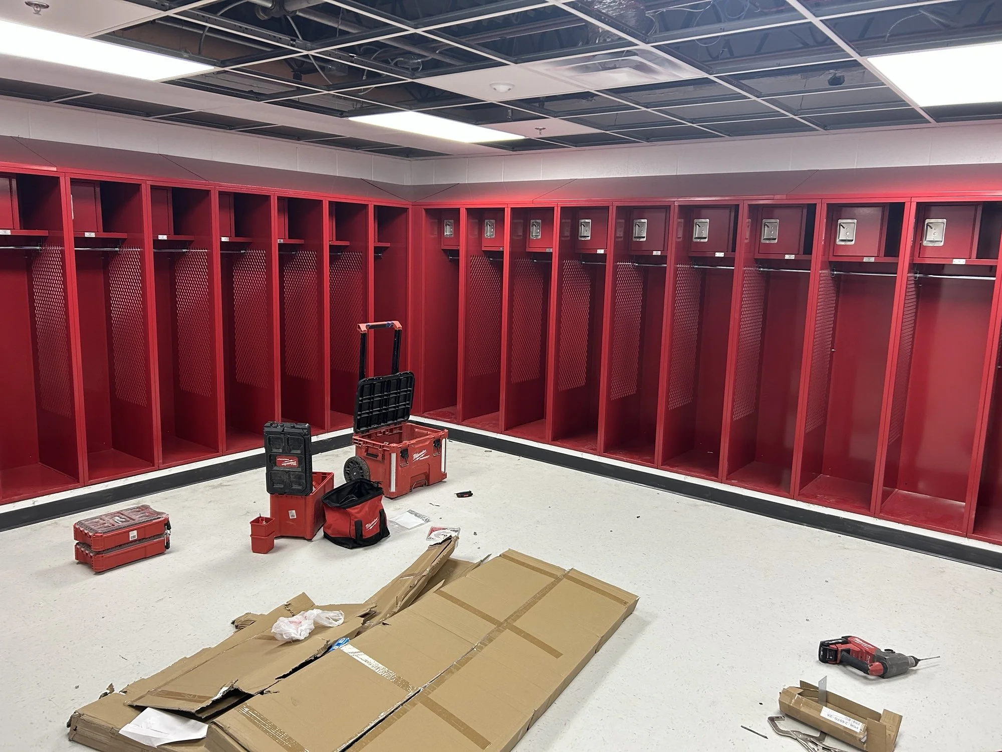 New home team lockers are getting installed.