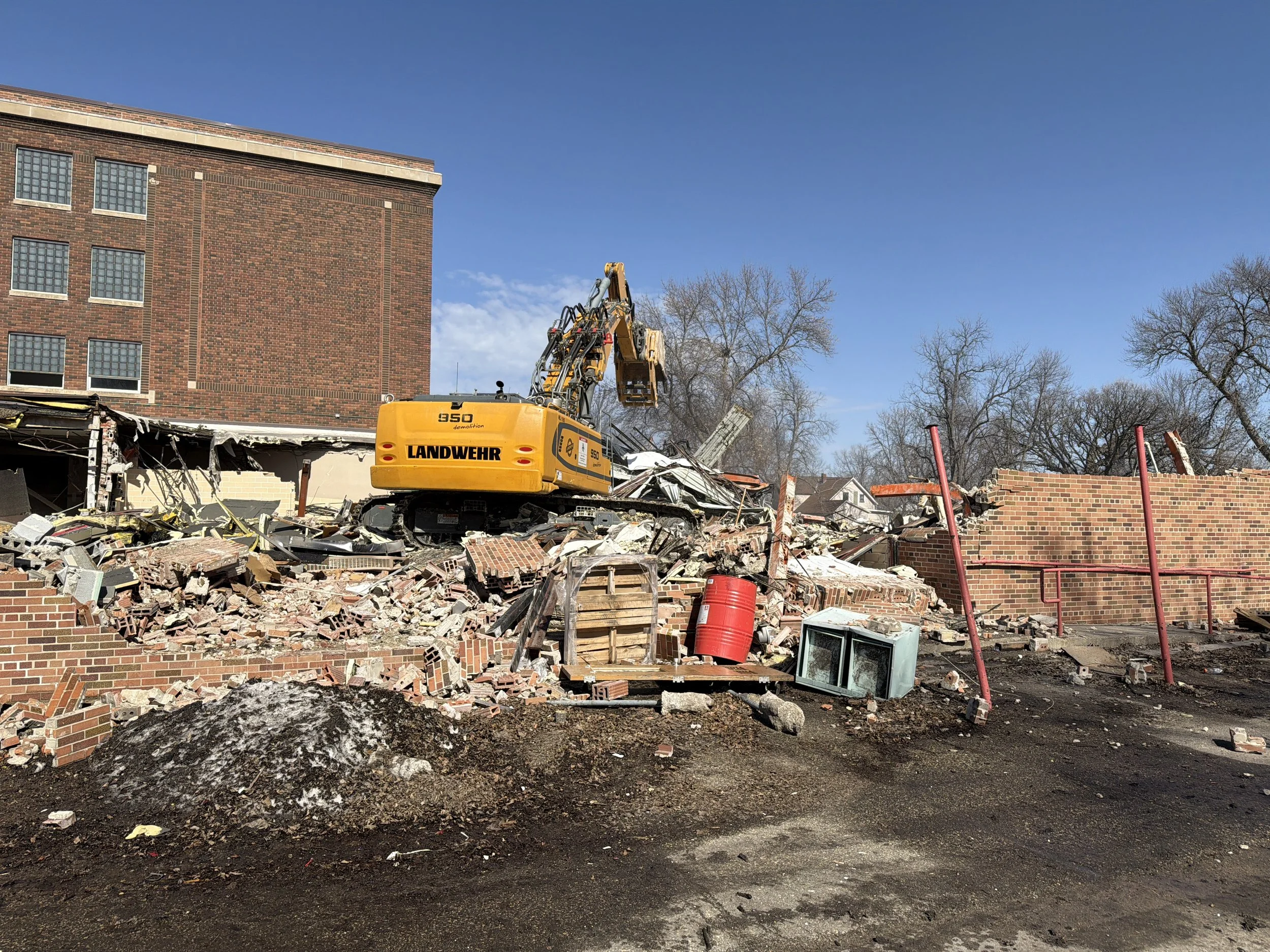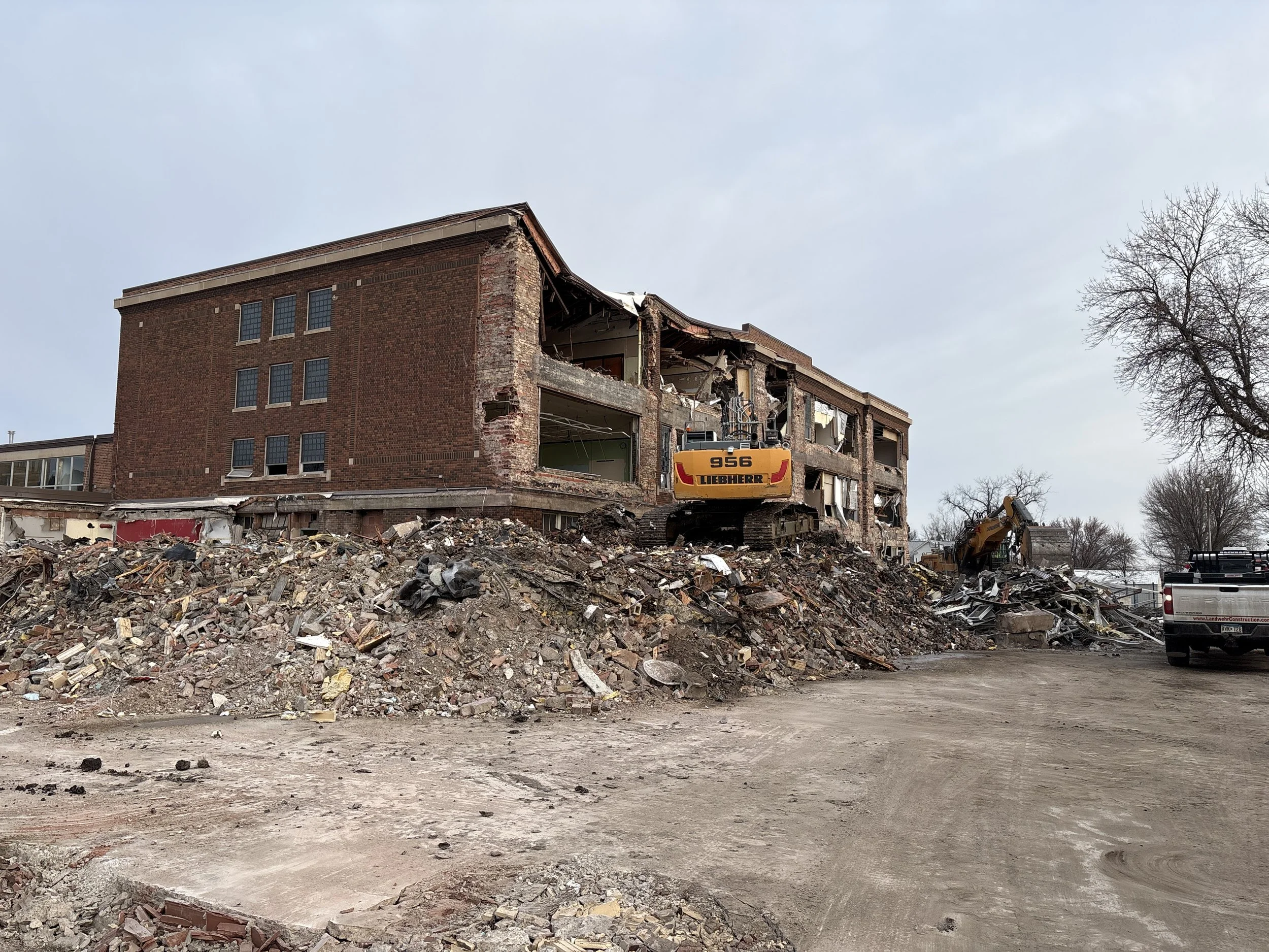Interior demolition is nearing completion and abatement work at West end of school is complete.
